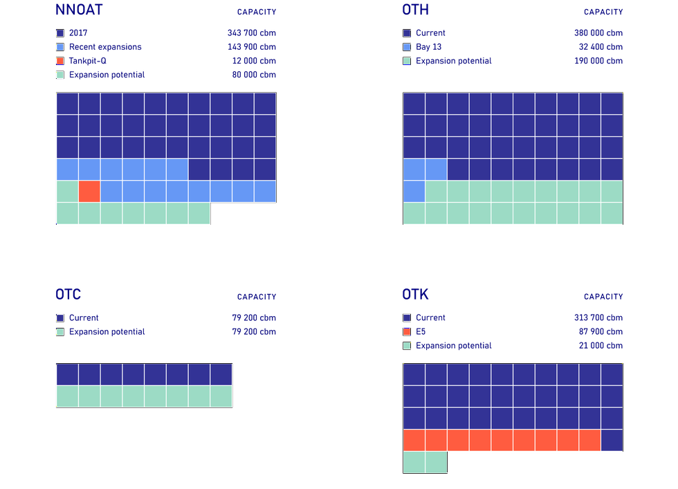 OTK is an example of the inherent option value of available land and terminal infrastructure, with the build-out decision of a major plot of land postponed in anticipation of optimal market conditions. Now, with the momentum from S-OIL’s USD 7 billion Shaheen project – a major crude-to-chemical facility being developed near OTK – conditions are ideal for executing the expansion. This expansion project, referred to as E5, marks the first expansion at OTK in 13 years. E5 will include 10 carbon steel tanks, increasing capacity by 28%, with total capacity exceeding 400,000 cbm