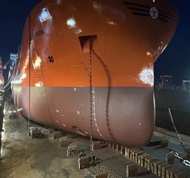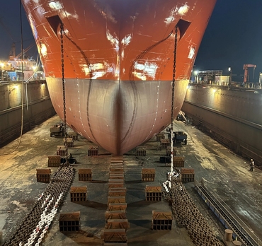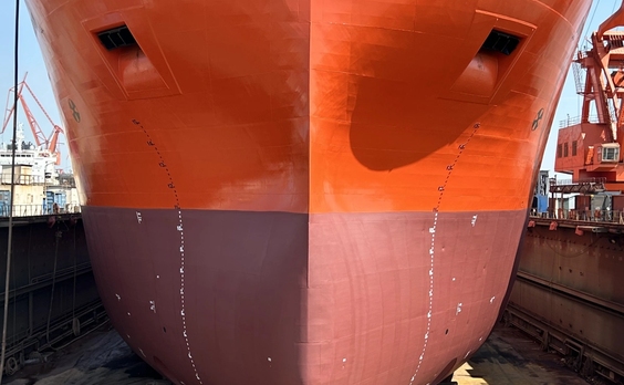 "The first Hudong vessel, Bow Orion, is already five years old. She was therefore due for her first renewal survey by Class and needed to go for dry-docking for bottom surveys and maintenance.