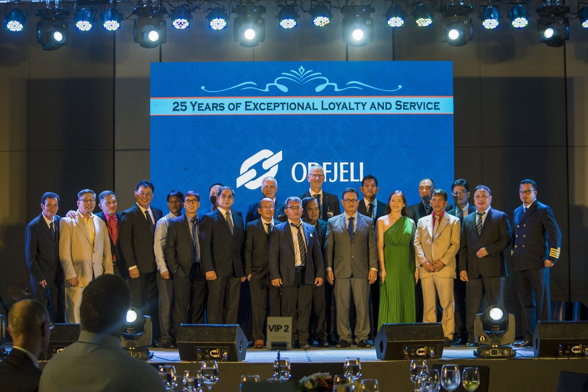 Sixteen seafarers and two office employees (also former seafarers) were honored before an audience of seafarers, family members and shore colleagues from Odfjell’s global offices. VP Maritime Personnel Svend Foyn-Bruun, VP Fleet Management Knut Erik Fredriksen and VP-Head of Crewing Agnes Enesio presented the plaque and gold watch to the following awardees: