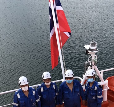 The Norwegian flag was hoisted on board before the ship left the Fukuoka shipyard and embarked on her maiden voyage to Sandakan port in Malaysia.