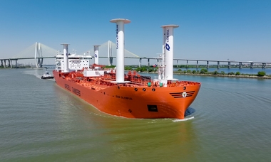Odfjell’s chemical tanker Bow Olympus completed a transatlantic voyage earlier this year, powered by a dual propulsion solution: suction sails on deck, 100% waste-based, ISCC-certified biofuel meeting both IMO and the EU’s sustainability criteria in the bunker tanks.